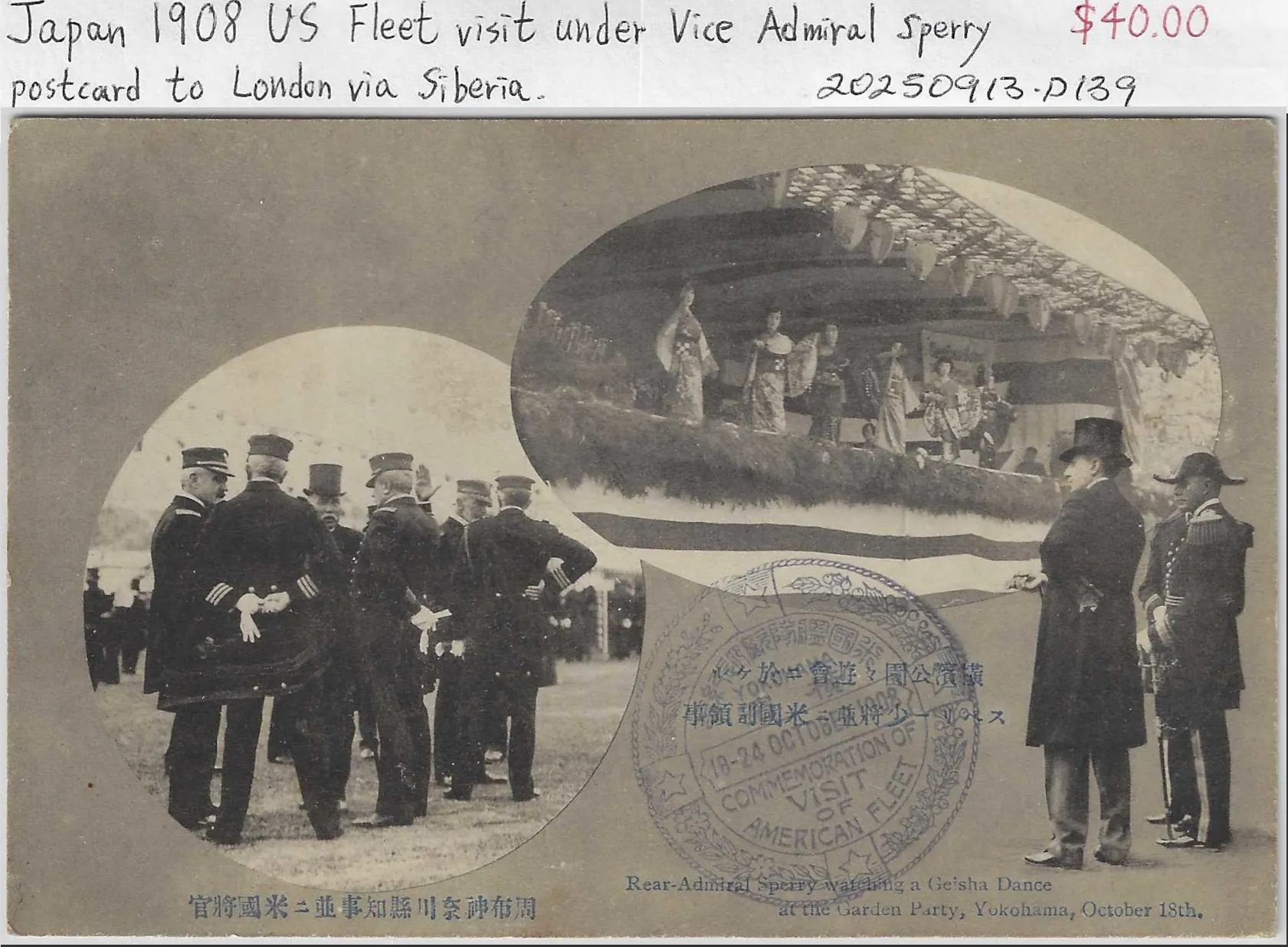 Visit under Vice Admiral Sperry Post Card to London via Siberia