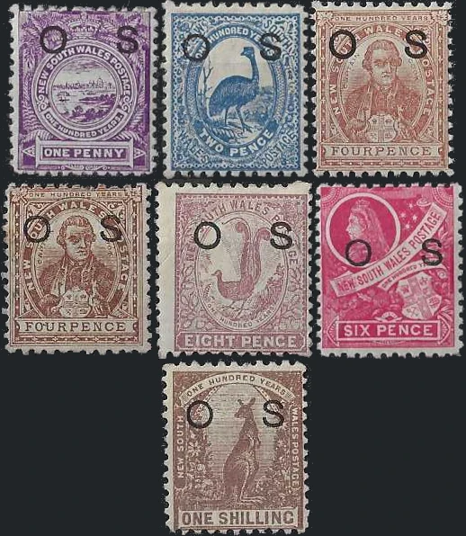 OS Definitive set, New South Wales 1888 – 1890, 1d – 1/-