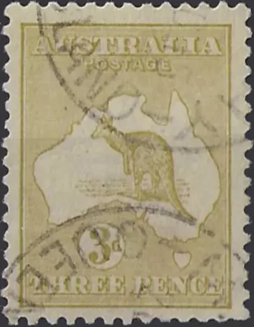 Kangaroos, Australia 1915-20, 3d 3rd WMK, Yellow-Olive