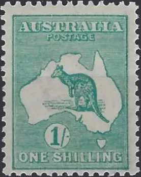 Kangaroo, Australia 1920, 1/-, Bright Blue-green