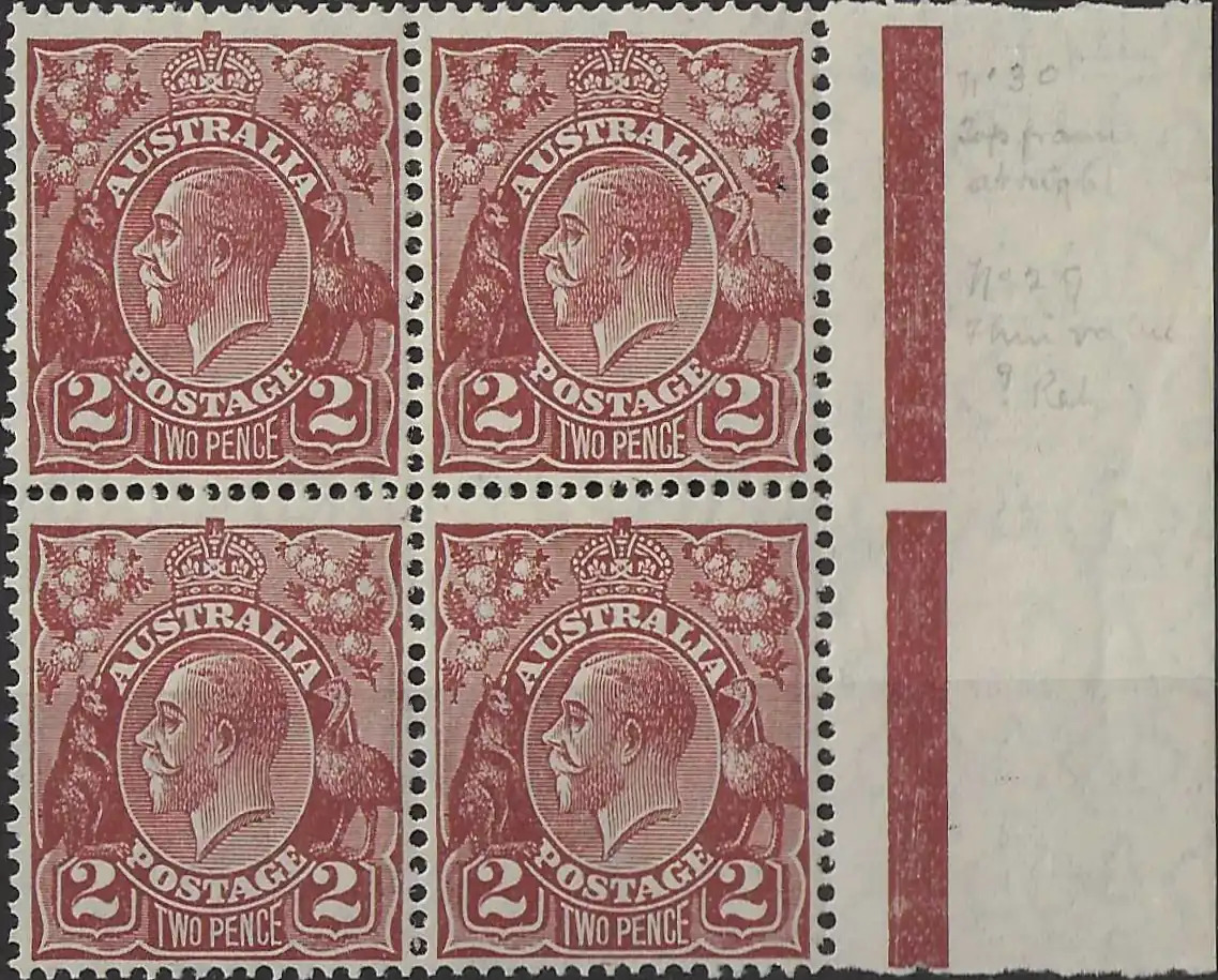 King George V, Australia 1928, 2d Small Multi. Perf. 13.5 Watermark, Red-BrownLink