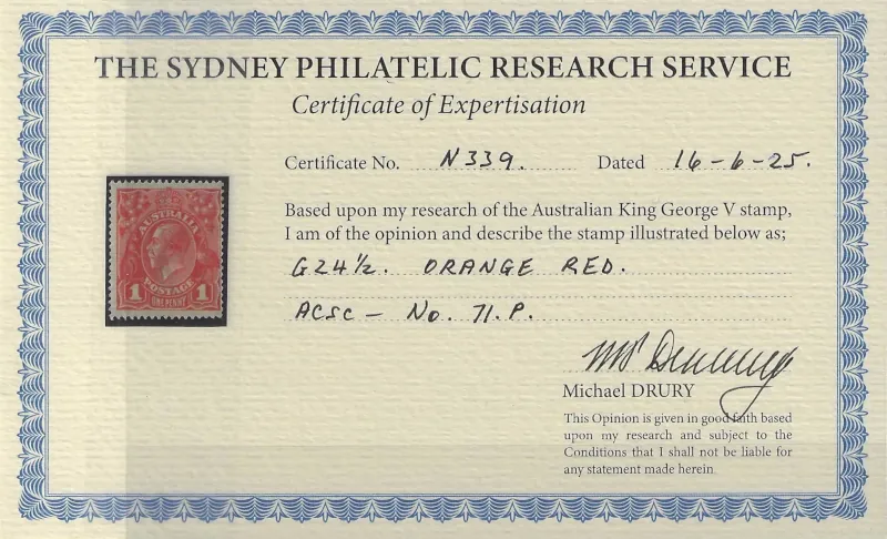 King George V, Australia 1917, 1d, Orange-Red (G24½)