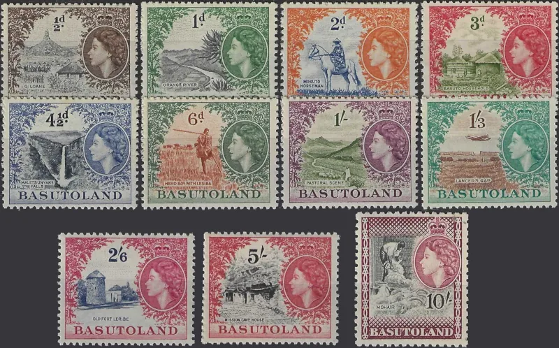 Queen Elizabeth II, Basutoland 1954, ½d – 10/-