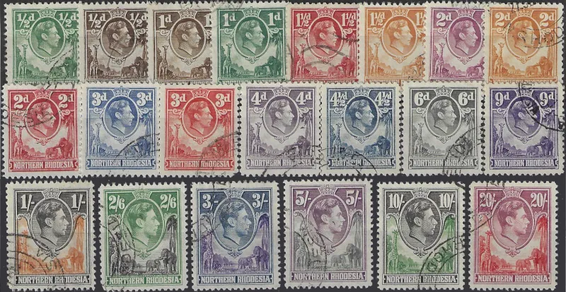 King George VI, Northern Rhodesia 1938, ½d – 20/-, Animal Pictorials