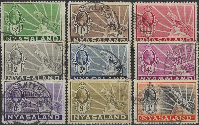 KIng George V, Nyasaland 1934, ¼d – 1/-, Animal Pictorials