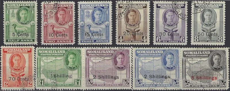 Overprinted values from 5c to 5 ShillingsSet of 11 Stamps