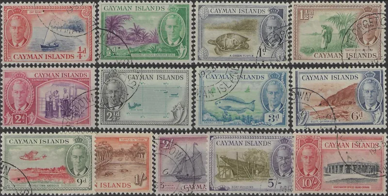 Pictorials, Cayman Islands 1950, ¼d – 10/-