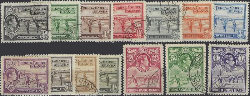 KGVI, Turks & Caicos Islands 1938, ¼d – 10/-, Workmen Pictorials