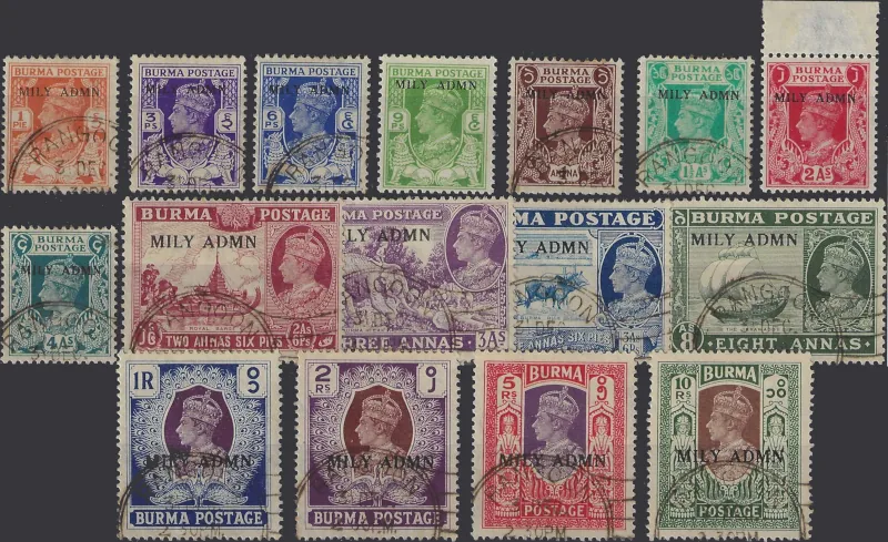 King fo Burma, Burma 1945, 1Pie – 10Rs, Pictorials