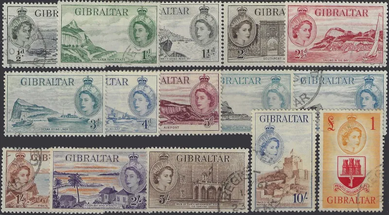 Queen Elizabeth II, Gibraltar 1953 – 59, ½d – £1