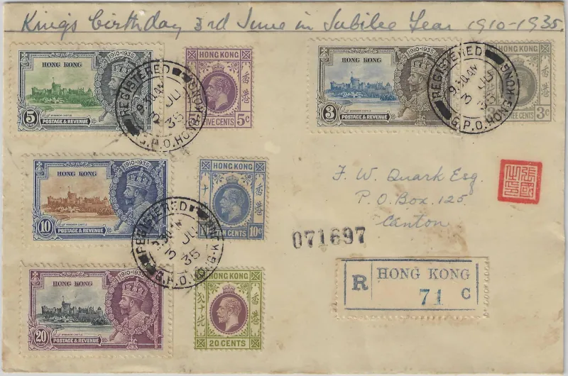 KGV Definitives, Hong Kong 1935, 3c – 20c
