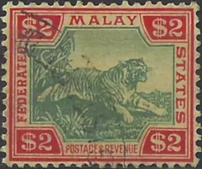 Federated, Malay States 1926, $2 Green & Carmine