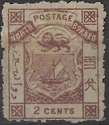 Coat of Arms, North Borneo 1883, 2c , Red/Brown