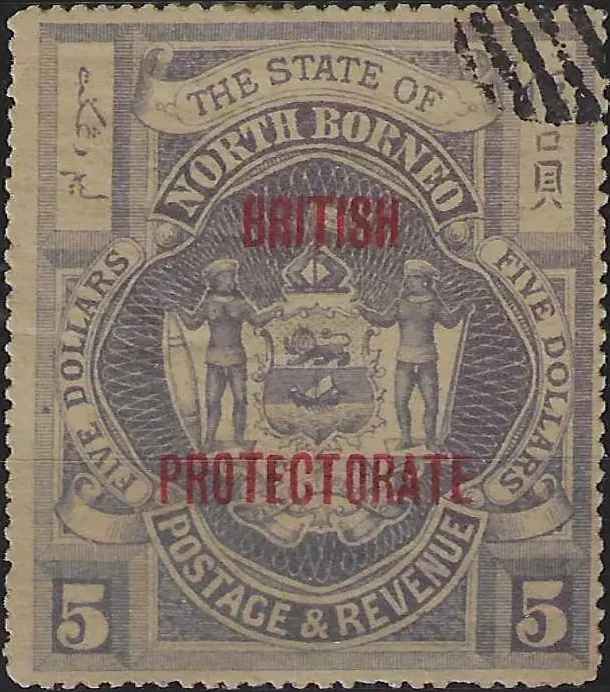 CTO Coat of Arms, North Borneo 1916, $5, Dull Purple