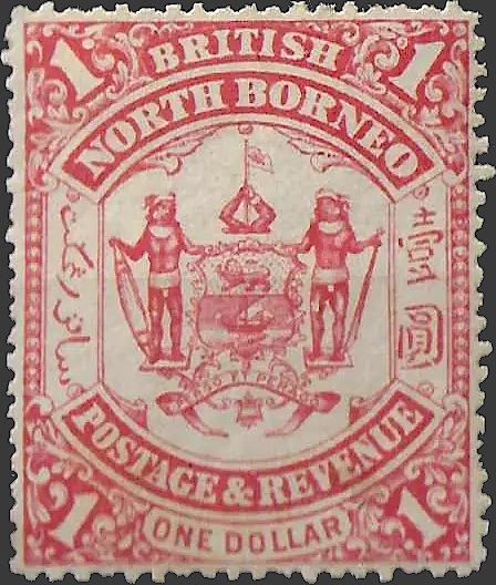 North Borneo, Coat of ARMS, 1888 – 1892, $1, Scarlet