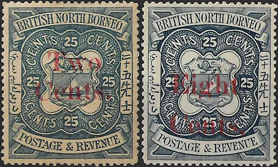 First Printing 3.5mm between lines, “Two Cents and Eight Cents” Overprint on 25c stamps.