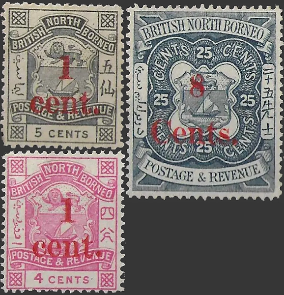 North Borneo, Coat of ARMS, 1893, 4c, 5c & 25c