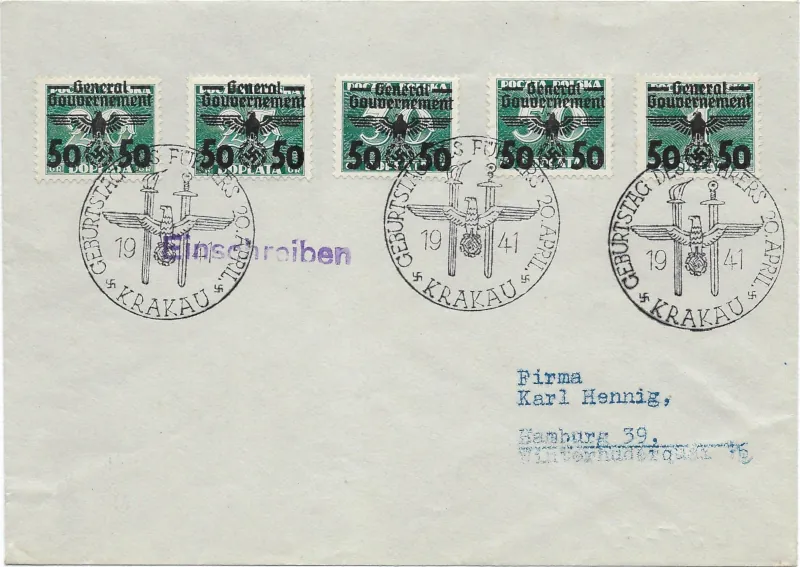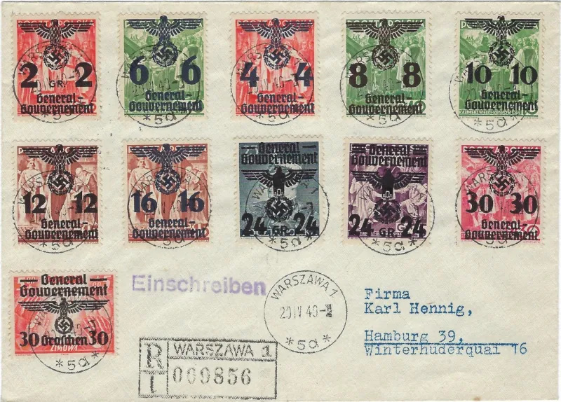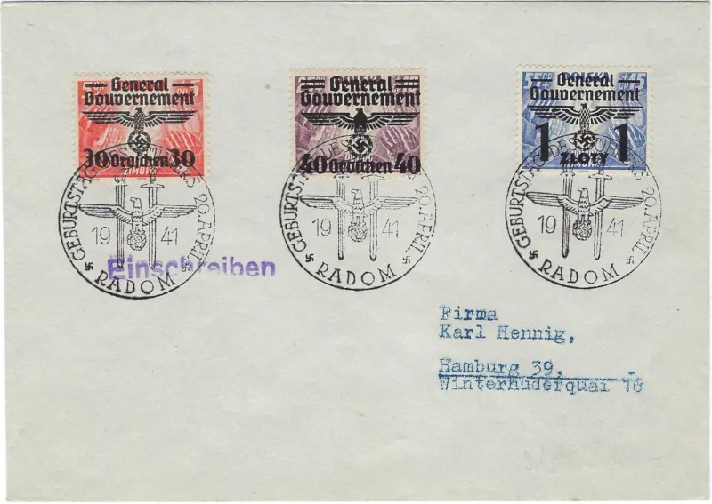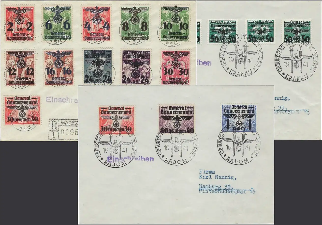 7 covers sent to Hamburg from Karkau, Radom and Warszawa tied with “First Issue” Overprints
