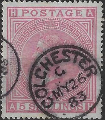 Queen Victoria, Great Britain 1882, 5/- Small Anchor WMK, Rose, Blued Paper
