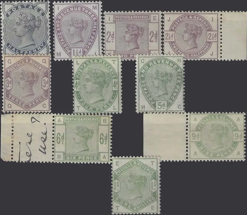 Queen Victoria, Great Britain 1883 – 84, ½d – 1/-, Monocolurs