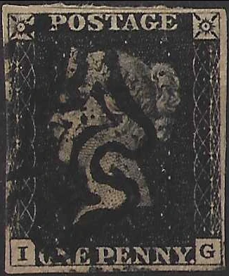 Queen Victoria Penny Black, Great Britain 1840, 1d