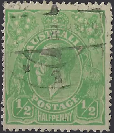 KGV, Australia 1915 – 23, ½d Single WMK, Green