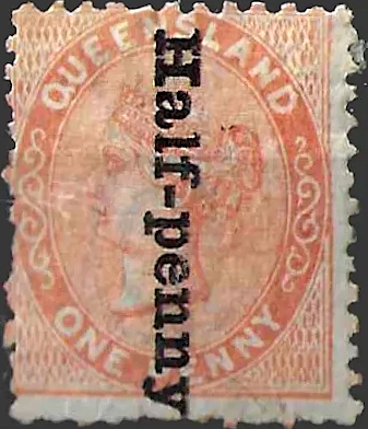 Variety – “FORGED” Because reading down, Original stamp SG 97, 1876-8 ID FLESH, DIE I